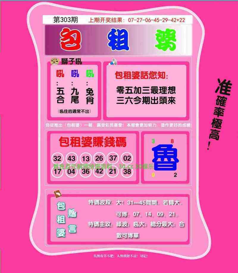 | 305期二肖 | 鼠蛇 | 開:鼠42 |